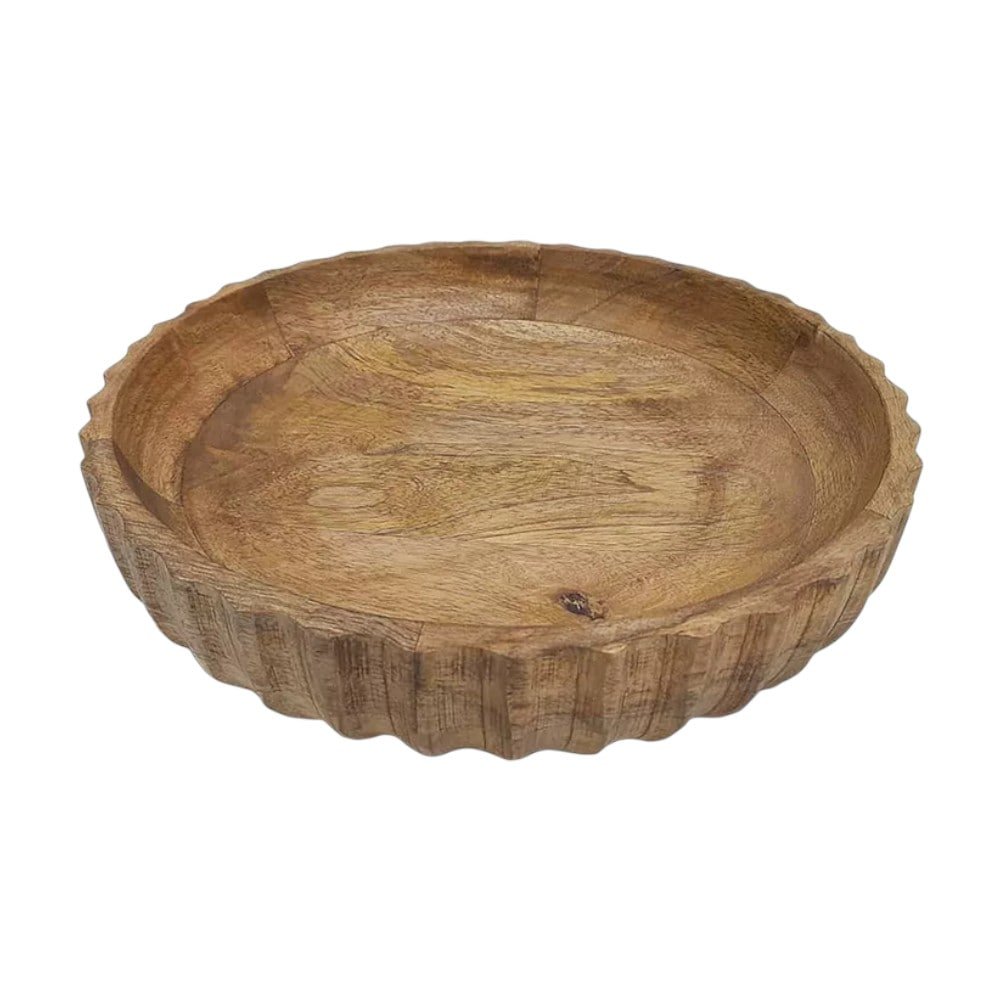 SIZE:- 16X5X2.5” CARVED MANGO WOOD BOWL FINISH :- NATURAL